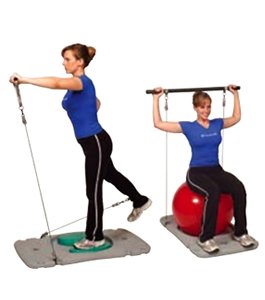 The Thera-Band? Exercise Station combines strength, balance and flexibility exercises into one convenient system for fitness and therapy. It is a platform that acts as a connection and integration point for various popular rehab and fitness devices, including exercise/fitness balls, elastic resistance tubing and bands, stability trainer pads, rocker boards, and wobble boards.